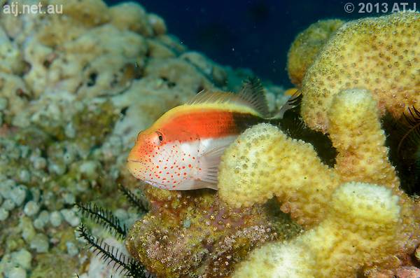 Juvenile black-backed hawkfish, Paracirrhites forsteri. 8 m. |