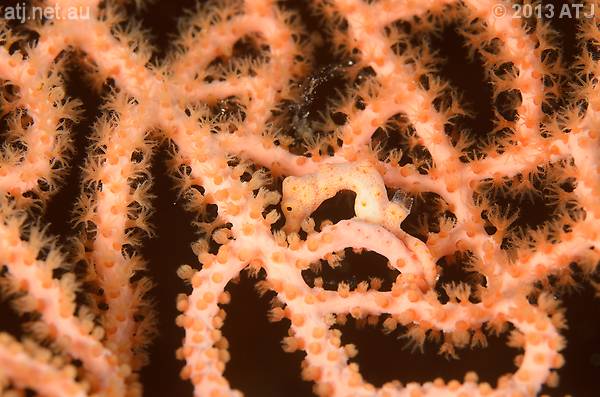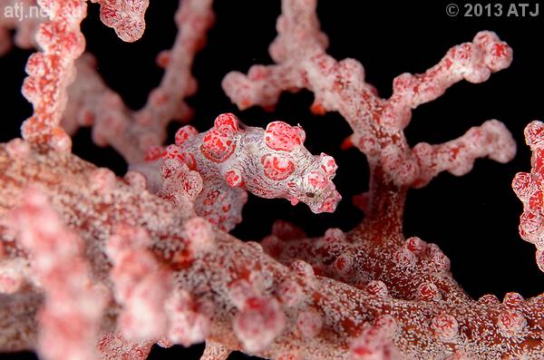 Pygmy seahorse, Hippocampus bargibanti. 18.2 m. |