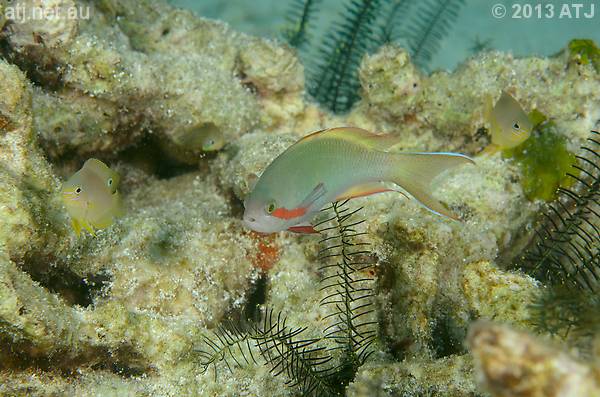Red-cheeked basslet, Pseudanthias huchtii. 5 m. |
