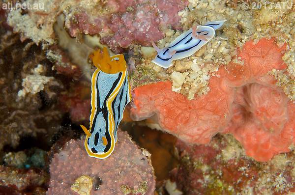 Nudibranchs, Chromodoris elizabethina and Chromodoris lochi. 22.6 m. |