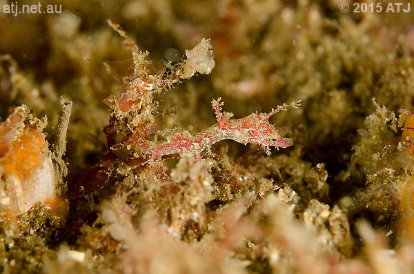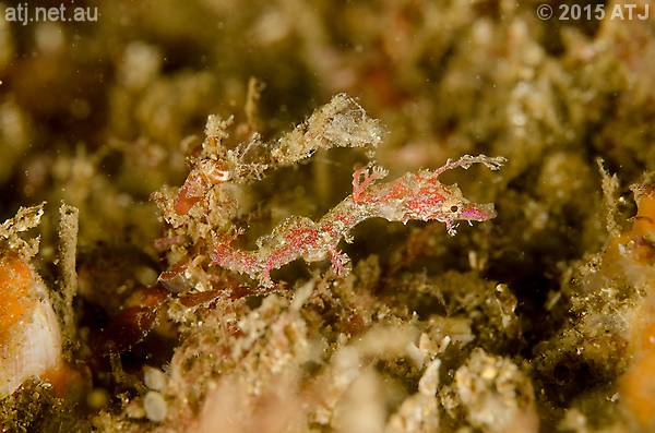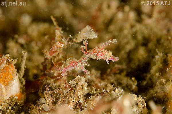 Juvenile Sydney pygmy pipehorse, Idiotropiscis lumnitzeri. 21.6 m. |