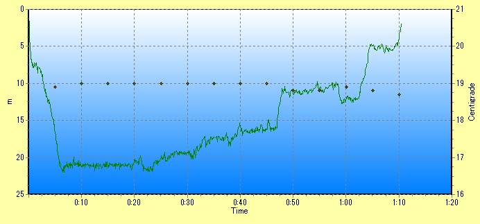 Male pot-bellied seahorse, Hippocampus abdominalis, ("Pierre"). 19.2 m. |