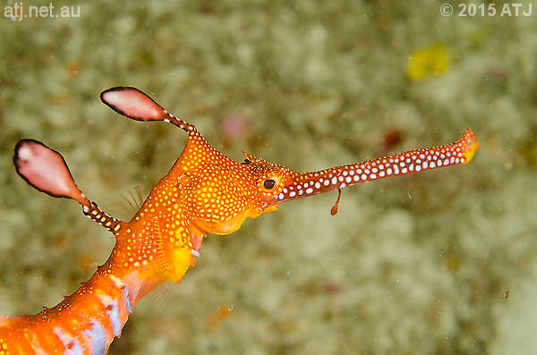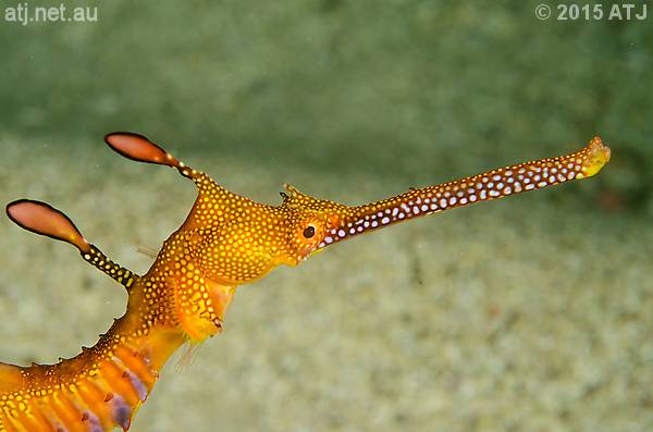 Juvenile weedy seadragon, Phyllopteryx taeniolatus. 16.4 m. |