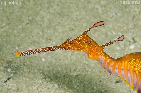 Weedy seadragon, Phyllopteryx taeniolatus, showing deformed body. 16.3 m. |