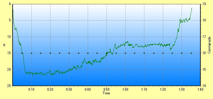 Female pot-bellied seahorse, Hippocampus abdominalis, ("Rosie"). 12.8 m. |