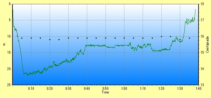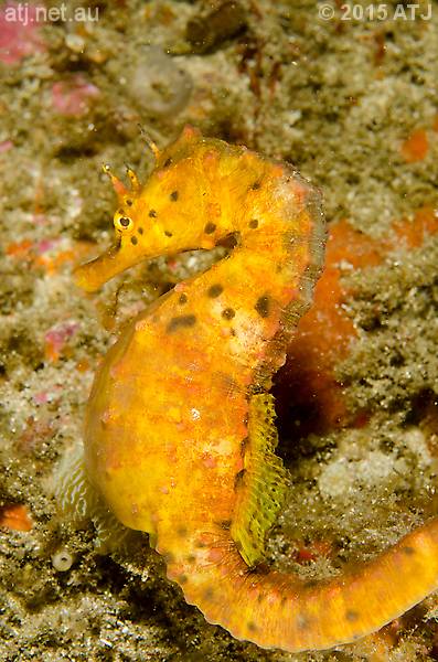 Female pot-bellied seahorse, Hippocampus abdominalis, ("Rosie"). 13.8 m. |