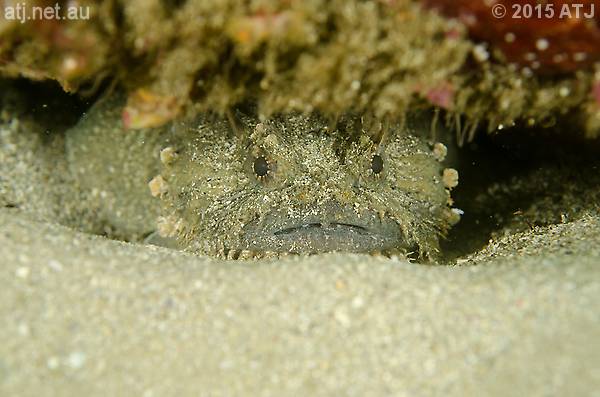 Eastern frogfish, Batrachomoeus dubius. 12.8 m. |