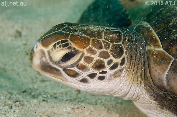 Green turtle, Chelonia mydas. 17.2 m. |