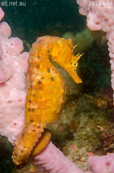 Female pot-bellied seahorse, Hippocampus abdominalis, ("Rosie"). 12.6 m. |