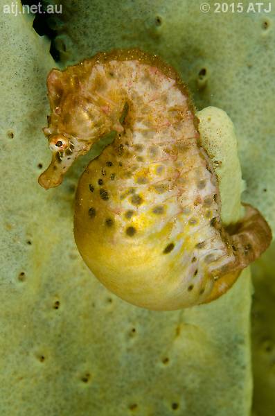 Female pot-bellied seahorse, Hippocampus abdominalis, ("Di"). 10.8 m. |