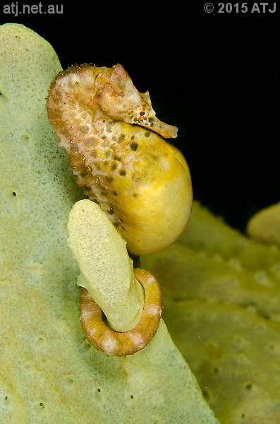 Male pot-bellied seahorse, Hippocampus abdominalis, ("Arnold"). 12.8 m. |
