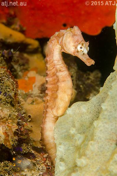 Female pot-bellied seahorse, Hippocampus abdominalis, ("Rosie"). 13.7 m. |