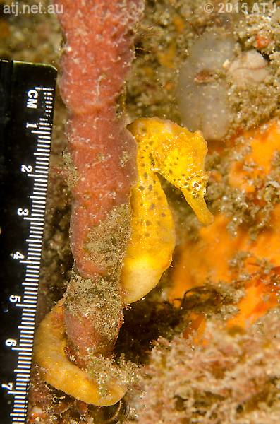 Female pot-bellied seahorse, Hippocampus abdominalis, ("Rosie"). 12.0 m. |