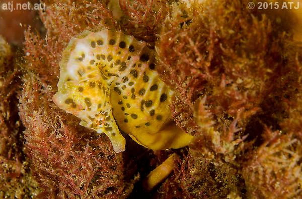 I realised just before the dive that I hadn't checked the battery on the camera before leaving home. When I checked it, there was a low battery warning. I was going to have careful with the camera, keep it off between shots and not take too many photos. The Leap was calm again - perhaps a little less calm than Friday but still pretty good. I jumped in from the low platform and on the surface the visibility was only 3-5 metres. I descended and swam at a bearing of around 60° arriving to the south east of Pygmy Rock. The visibility here was around 10 metres and there were a lot of sea jellies in the water. I headed towards The Steps. I moved pretty quickly with the current and I wanted to get to the good stuff while I still had life left in the camera battery. Just past Seahorse Rock I found the same large juvenile weedy seadragon (PT2015062401) that has been in that location for some time. I continued on to Seadragon Alley where I saw 4 weedy seadragons: two females (PT2015011102, PT2013122201) and two large juveniles (PT2015091101, PT2015051001). Between Seadragon Alley and Big Rock I found the deformed female weedy (PT2014030901) swimming with a male (PT2014091301) who had a lot of eggs. After Big Rock I swam up the reef to visit my two pygmy pipehorses. As I did on Friday, I found the male (IL2015092701) immediately and had to hunt for a while to find the female (IL2015072601). I swam back down to the sand line and found a male weedy seadragon (PT2015061401) with a lot of eggs before I reached the basket star. I continued on to Diversity Rock. I found the new seahorse, "Daniel" on the same sponge as he was on Friday. The angler was on the rock to the left. "Noel" was back on the pink sea tulips. "Rosie" and "Arnold" were on the rock behind Diversity Rock. The male pygmy pipehorse (IL2015102401) was in the Carijoa. I had a look for the other seahorse, "Greg" but could not find him. While I was at Diversity Rock, Noel and Di Conlon swam up. We'll have to stop meeting like that. I was able to show them the new seahorse as well as the other three seahorses, the pygmy and the angler. I stayed with Noel and Di for much of the rest of my dive. Di pointed out the Nembrotha purpureolineata and Noel pointed out the large Miamira magnifica. We didn't see the small one and Noel couldn't find the Ceratosoma brevicaudata. I checked out the rock where "Di", the seahorse, has been and couldn't find her again. I wonder where she goes. I then left Noel and Di and swam to the boulders, did my safety stop and exited at The Steps. |