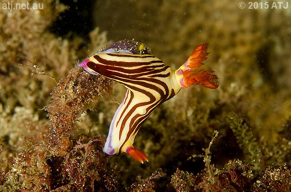 Nudibranch, Nembrotha purpureolineata. 11.7 m. |