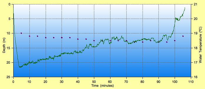 The forecast was good for an early dive at The Leap. The exit at The Steps looked good, as did the entry at The Leap. Roney joined me for the start of the dive but had limited time. We both got in from the low platform. Even though it was only 2 hours before high tide the low swell and moderate high tide meant the water was only lapping over the platform. We swam out on the surface and when ready we descended. We swam at around 60° to the sand line. I was hoping we'd end up near the amphitheatre so I'd be able to find the robust ghostpipefish I'd seen last Friday but the current must have taken us a bit farther north-west and we ended up at Lucy and Bob Rock. At the sand line the visibility was around 5 metres, the water temperature between 18 and 19°C and there wasn't much surge. We initially turned right and swam along the sand line in search of the robust ghostpipefish. The current was quite strong and it was difficult swimming against it. I gave up after 30 or so metres and not finding the ghostpipefish and drifted with the current, still looking for ghostpipefish. I passed Seahorse Rock and on to the flat rocks with sponges. I checked under the overhang and found "Clyde", the male weedy seadragon there. I found another male on the outside of the first flat rock and a female between the two flat rocks. Roney caught up to me while I was photographing the weedy seadragons and then went on ahead. I swam on to Southern Cross Rock seeing another weedy seadragon on the way. I could see Roney above the next rock and then I didn't see him for the rest of the dive. I found two pygmy pipehorses on the side of Southern Cross Rock: a white female and a yellow male. I continued to Seadragon Alley and found a weedy seadragon near the start. A little farther in I found the juvenile weedy seadragon. From here until near the end of Seadragon Alley I was looking carefully for the other robust ghostpipefish I saw last Friday. Right near the end I not only found the one from last week but it had a partner. The second one was smaller and was covered on light spots that made it look like seagrass covered in coralline algae.Just after the end of Seadragon Alley I found one of the red Stigmatopora sp. pipefish. It was in the spot near where I first saw the one with the parasite. Perhaps it is the same individual. I looked around for a partner but could not find one. I swam along the sand line towards Big Rock. I spotted PJ, George and Paula a little shallower. I waived to Paula and PJ but I couldn't get George's attention. I kept swimming along the sand line but was moving faster than I thought due to the current and swam right past Big Rock without realising. Just as I was level with the rock below Hand Rock, George signalled me with his light and indicated there was a anglerfish on the other side of the rock. If he hadn't signalled me, I don't know how far I would have gone before I realised where I was. I looked at the anglerfish. It was the white/pink anglerfish back on the same rock where we first saw it in November last year. I dropped down to the base of the rock and spotted the whitish male pygmy pipehorse. It was back. I was taking photographs of the pygmy pipehorse when for some reason I looked up towards Big Rock. There was a large male grey nurse shark swimming away from me. His trajectory meant he must have swum right over the top of me. I wonder if I'd sensed him and that was why I looked up. It was difficult to judge his length as it was swimming away from me but he was at least 2 metres long. His disappeared behind the top end of Big Rock. He was so cool to see. I moved up the reef and spotted a Nembrotha purpureolineata nudibranch. I looked around for the juvenile bridled triggerfish but I couldn't find it. I didn't find any pygmy pipehorses on Square Rock. I found the one-eyed White's seahorse on the back of her usual rock. I swam along the reef to New Basket Star Rock and was shocked that not only was the basket star gone but the sponge on which it has been living for the last few months was also gone. I looked around the area and found it low down on a red chimney sponge around 5 metres away. I wonder if someone dropped an anchor on it. I looked around the sand in the red algae for red pipefish but found none and then headed over to Diversity Rock. I spotted a tiny juvenile thorny-back cowfish in the sea tulips on the rock above Diversity Rock. I followed it down to Diversity Rock. I swam on to Little Big Rock and spotted a large crested horn shark on the way. I found the white female pygmy pipehorse on her rock and then eventually found the two cryptic pygmy pipehorses on the rock above. I continued along the reef to the rock where the yellow red-fingered anglerfish has been. It had moved back to the spot it had been at two weeks ago. I looked around the area for more anglerfishes but found none. After searching for interesting organisms I headed for the boulders. I spotted a fiddler ray on the sand. At the boulders I ascended to 5 metres and started my safety stop as I swam to Split Rock. I finished my Safety Stop at Split Rock and swam to the exit. I stayed underwater right to the exit spot. The exit was easy. |