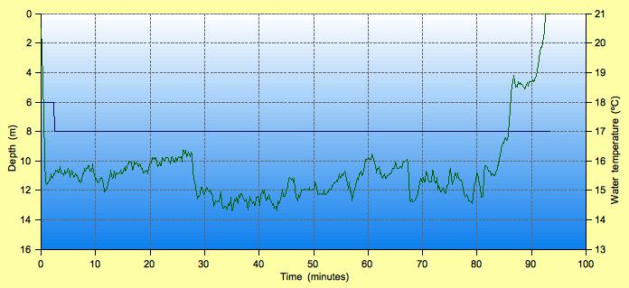 Juvenile weedy seadragon, Phyllopteryx taeniolatus. 12.8 m. |