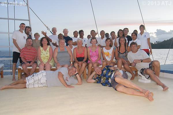 In February 2013, I went on another Siren Fleet trip, this time to Raja Ampat on board the S/Y Indo Siren. The guests were a mix of groups rather than a single group like the Komodo trip. We had 8 guests from the US, 3 from the UK, 2 from Germany, 1 from NZ and just me holding up the Aussie flag. The crew included Daeng as Captain (he'd also captained the S/Y Pa Siren on the Komodo Trip) and Nicole who had been one of the divemasters on the Komodo trip. The rest of the crew were all new, but they soon became friends.