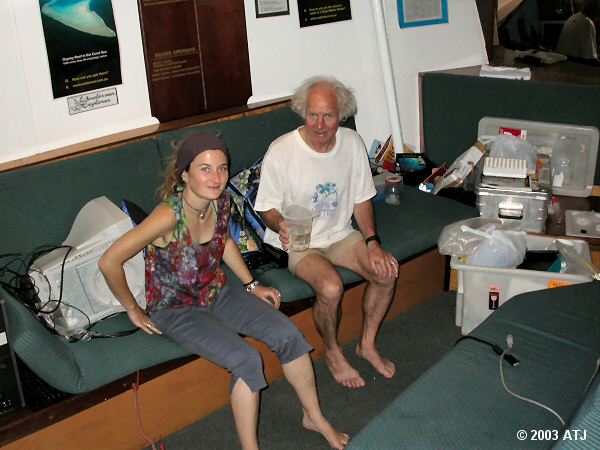 Following Andy's talk, we migrated to the dry lab/multimedia area for an introductory talk by Anya and each of the guests introduced themselves and summarised their areas of expertise. At just after 9pm, James started the boat steaming towards the ribbon reefs.