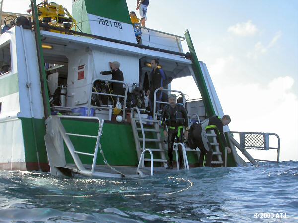 The Undersea Explorer as seen from the water after the dive on Nursery Bommie