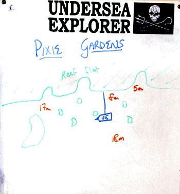 The briefing basically set the rules and guidelines for all the dives on the trip. This was followed by the briefing for our first dive which was at Pixie Gardens at the southern end of Ribbon Reef #10. Clare drew us a site map, something we would get for each dive site.