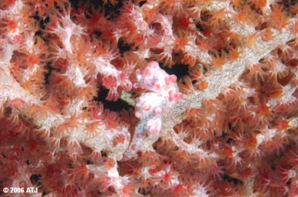 On one of the dives, we were lucky enough to see some pygmy seahorses, Hippocampus bargibanti. These fish are tiny at around 2 cm tall. They were very hard to see on their sea fan and difficult to photograph.