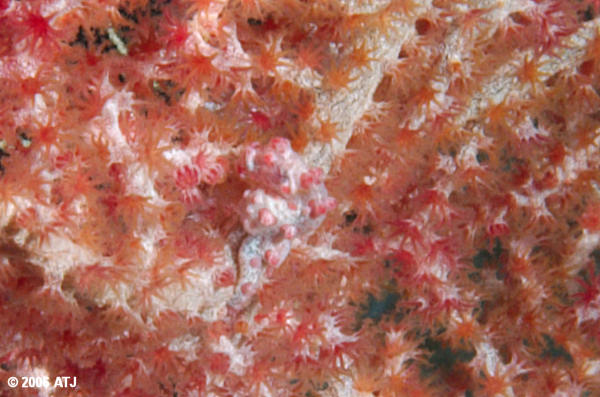 The plan at Lizard was to look for interesting octopus and cuttlefish (e.g. something like Metasepia pfefferi). For this we did a muck dive in Watson's Bay. Mark gave us an introductory talk on what we might find, including these very strange stony corals, Heteropsammia cochlea, that initially settle on shells inhabited by hermit crabs but eventually grow over the shell and then allow a worm to live in the shell. The worm pulls the coral around the bay floor.