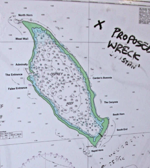 After a very rough trip overnight, we arrived at Osprey Reef just before 10 am. Osprey Reef is a sea mount in the Coral Sea some 150 kilometres east of the Great Barrier Reef. The water around the reef drops to 1,000 metres and all dive sites outside the lagoon have steep drop-offs.
