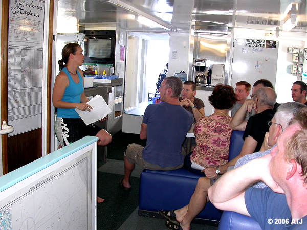 After a light breakfast we were given an introductory dive briefing by Clare.