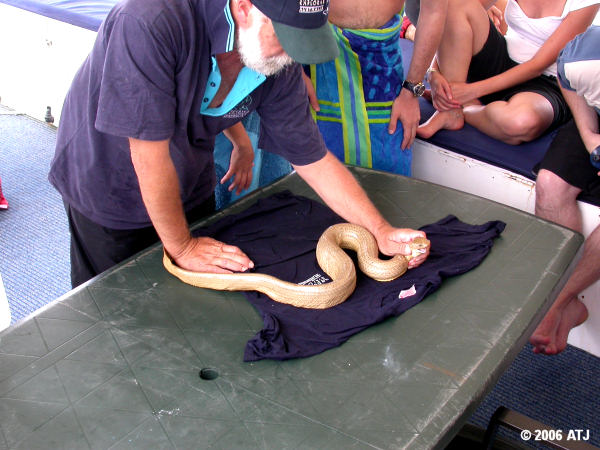While on the dive, Jimmy caught a olive sea snake and brought it back to the boat for us all to see. Jimmy and JR gave us a brief talk on the top deck about sea snakes.