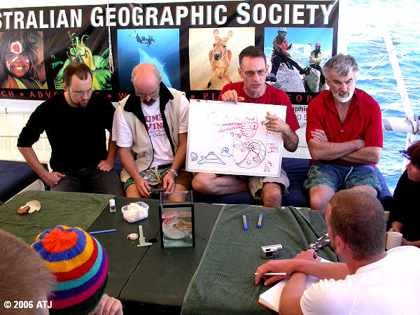 Before the night dive, Jimmy and a couple of the guests went out to set the Nautilus traps for the night. Undersea have been capturing, measuring, tagging and releasing Nautilus at Osprey Reef for 10 years in an effort to gain more information on these "living fossils".