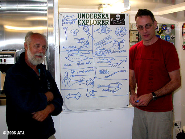 As we were preparing for the night dive, Mark provided some information on what we might find under the boat after the night dive. He was mostly interested in octopus and squid that may be attracted to the lights.
